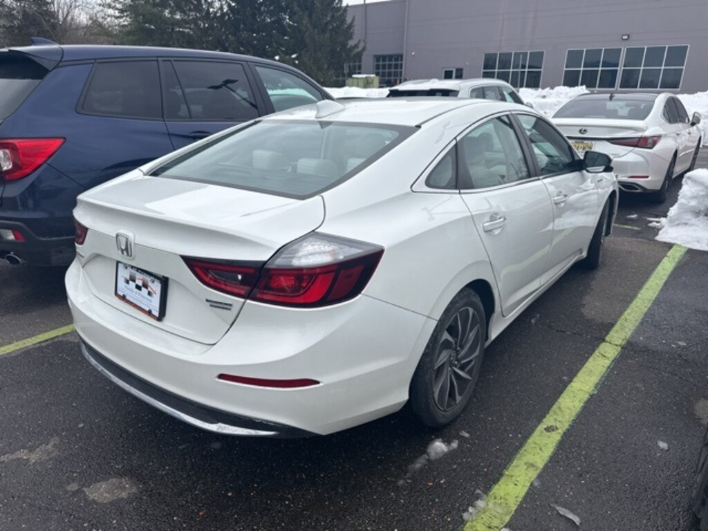 Thank you for your interest in this pre-owned vehicle from Honda of Princeton. This vehicle has been thoroughly inspected and offers dependable performance, comfort, and great value. 2019 Honda Insight Touring FWD CVT 1.5L I4 SMPI DOHC 16V LEV3-SULEV30 White Orchid Pearl CLEAN CARFAX/NO ACCIDENTS REPORTED, ONE OWNER, SUNROOF/MOONROOF, LEATHER, Honda CERTIFIED, HondaTrue Certified Certified, CVT, 10 Speakers, 17" Aluminum Alloy Wheels, 4-Wheel Disc Brakes, ABS brakes, Air Conditioning, Alloy wheels, AM/FM radio: SiriusXM, Apple CarPlay/Android Auto, Auto High-beam Headlights, Auto-dimming Rear-View mirror, Automatic temperature control, Brake assist, Bumpers: body-color, Compass, Delay-off headlights, Driver door bin, Driver vanity mirror, Dual front impact airbags, Dual front side impact airbags, Electronic Stability Control, Emergency communication system: HondaLink Assist, Exterior Parking Camera Rear, Forward collision: Collision Mitigation Braking System (CMBS) + FCW mitigation, Four wheel independent suspension, Front anti-roll bar, Front Bucket Seats, Front Center Armrest, Front dual zone A/C, Front fog lights, Front reading lights, Fully automatic headlights, Garage door transmitter: HomeLink, Heated door mirrors, Heated Front Bucket Seats, Heated front seats, Illuminated entry, Lane departure: Lane Keeping Assist System (LKAS) active, Leather Seat Trim, Leather steering wheel, Low tire pressure warning, Navigation system: Honda Satellite-Linked Navigation System, Occupant sensing airbag, Outside temperature display, Overhead airbag, Overhead console, Panic alarm, Passenger door bin, Passenger vanity mirror, Power door mirrors, Power driver seat, Power moonroof, Power passenger seat, Power steering, Power windows, Radio data system, Radio: 450-Watt Premium Audio System w/10 speakers, Rain sensing wipers, Rear anti-roll bar, Rear seat center armrest, Rear window defroster, Remote keyless entry, Security system, Speed control, Speed-sensing steering, Speed-Sensitive Wipers, Split folding rear seat, Steering wheel mounted audio controls, Telescoping steering wheel, Tilt steering wheel, Traction control, Trip computer, Turn signal indicator mirrors, Variably intermittent wipers, CVT.