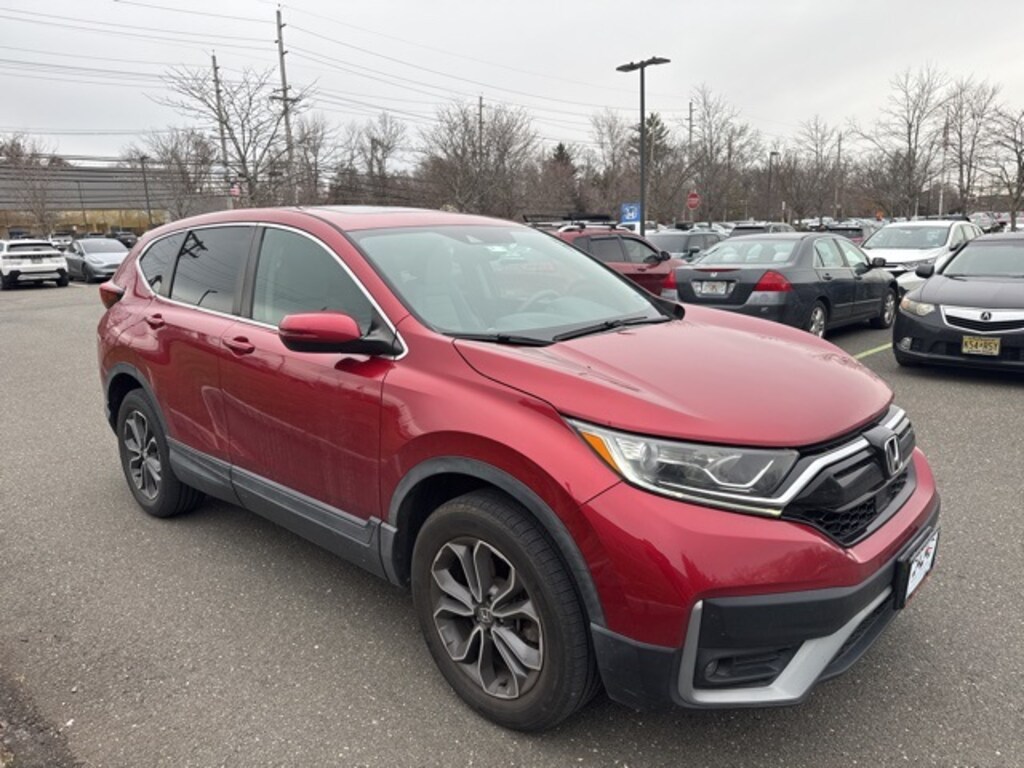 CARFAX One-Owner. Clean CARFAX. Certified. 2020 Honda CR-V CLEAN CARFAX ONE OWNER, Honda CERTIFIED, SUNROOF, CR-V EX, 4D Sport Utility, 1.5L I4 DOHC 16V, AWD, Red, Cloth, 18" Alloy Wheels, 4-Wheel Disc Brakes, 6 Speakers, ABS brakes, Adaptive Cruise Control: Adaptive Cruise Control (ACC) with Low-Speed Follow, Air Conditioning, Alloy wheels, AM/FM radio: SiriusXM, Apple CarPlay/Android Auto, Auto High-beam Headlights, Automatic temperature control, Blind Spot Information (BSI) System warning, Brake assist, Bumpers: body-color, Cloth Seat Trim, Compass, Delay-off headlights, Driver door bin, Driver vanity mirror, Dual front impact airbags, Dual front side impact airbags, Electronic Stability Control, Exterior Parking Camera Rear, Forward collision: Collision Mitigation Braking System (CMBS) + FCW mitigation, Four wheel independent suspension, Front anti-roll bar, Front Bucket Seats, Front Center Armrest, Front dual zone A/C, Front fog lights, Front reading lights, Heated door mirrors, Heated Front Bucket Seats, Heated front seats, Illuminated entry, Low tire pressure warning, Occupant sensing airbag, Outside temperature display, Overhead airbag, Overhead console, Panic alarm, Passenger door bin, Passenger vanity mirror, Power door mirrors, Power driver seat, Power moonroof, Power steering, Power windows, Radio data system, Radio: 180-Watt AM/FM/HD/SiriusXM Audio System, Rear anti-roll bar, Rear seat center armrest, Rear window defroster, Rear window wiper, Remote keyless entry, Security system, Speed control, Speed-sensing steering, Speed-Sensitive Wipers, Split folding rear seat, Spoiler, Steering wheel mounted audio controls, Tachometer, Telescoping steering wheel, Tilt steering wheel, Traction control, Trip computer, Turn signal indicator mirrors, Variably intermittent wipers.