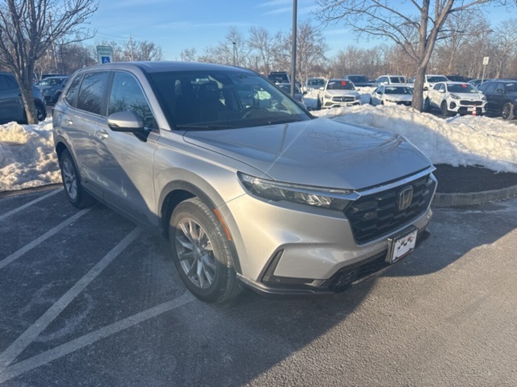 Thank you for your interest in this pre-owned vehicle from Honda of Princeton. This vehicle has been thoroughly inspected and offers dependable performance, comfort, and great value. 2023 Honda CR-V EX-L AWD CVT 1.5L I4 DOHC 16V Lunar Silver Metallic CLEAN CARFAX/NO ACCIDENTS REPORTED, ONE OWNER, SUNROOF/MOONROOF, LEATHER, Honda CERTIFIED, HondaTrue Certified Certified, AWD, 4-Wheel Disc Brakes, 5.64 Axle Ratio, 8 Speakers, ABS brakes, Adaptive Cruise Control: Adaptive Cruise Control (ACC) with Low-Speed Follow, Air Conditioning, Alloy wheels, AM/FM radio: SiriusXM, Auto High-beam Headlights, Auto-dimming Rear-View mirror, Automatic temperature control, Brake assist, Bumpers: body-color, Compass, Delay-off headlights, Driver door bin, Driver vanity mirror, Dual front impact airbags, Dual front side impact airbags, Electronic Stability Control, Exterior Parking Camera Rear, Four wheel independent suspension, Front anti-roll bar, Front Bucket Seats, Front Center Armrest, Front dual zone A/C, Front reading lights, Fully automatic headlights, Heated door mirrors, Heated Front Bucket Seats, Heated front seats, Illuminated entry, Knee airbag, Leather Seat Trim, Leather Shift Knob, Leather steering wheel, Low tire pressure warning, Memory seat, Occupant sensing airbag, Outside temperature display, Overhead airbag, Overhead console, Panic alarm, Passenger door bin, Passenger vanity mirror, Power door mirrors, Power driver seat, Power Liftgate, Power moonroof, Power passenger seat, Power steering, Power windows, Radio data system, Radio: 320-Watt AM/FM/HD/SiriusXM Audio System, Rear anti-roll bar, Rear reading lights, Rear seat center armrest, Rear side impact airbag, Rear window defroster, Rear window wiper, Remote keyless entry, Security system, Speed control, Speed-sensing steering, Speed-Sensitive Wipers, Split folding rear seat, Spoiler, Steering wheel mounted audio controls, Tachometer, Telescoping steering wheel, Tilt steering wheel, Traction control, Trip computer, Turn signal indicator mirrors, Variably intermittent wipers, Wheels: 18" Sparkle Silver Metallic, Wireless Apple CarPlay/Wireless Android Auto, AWD.